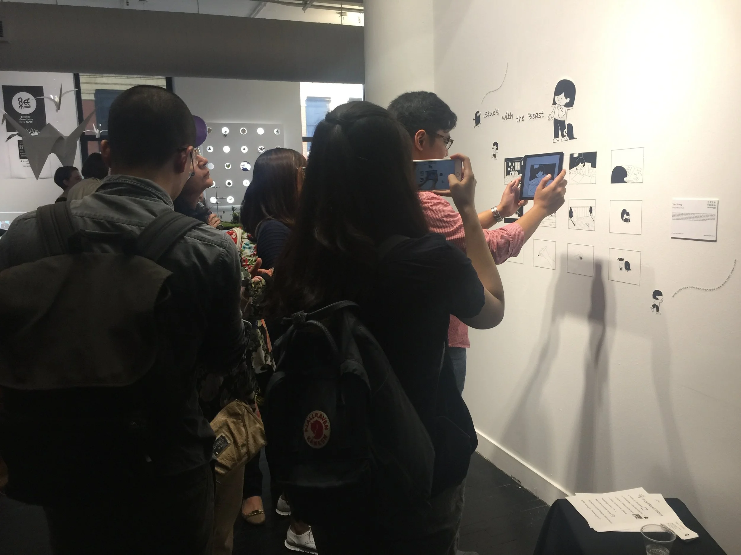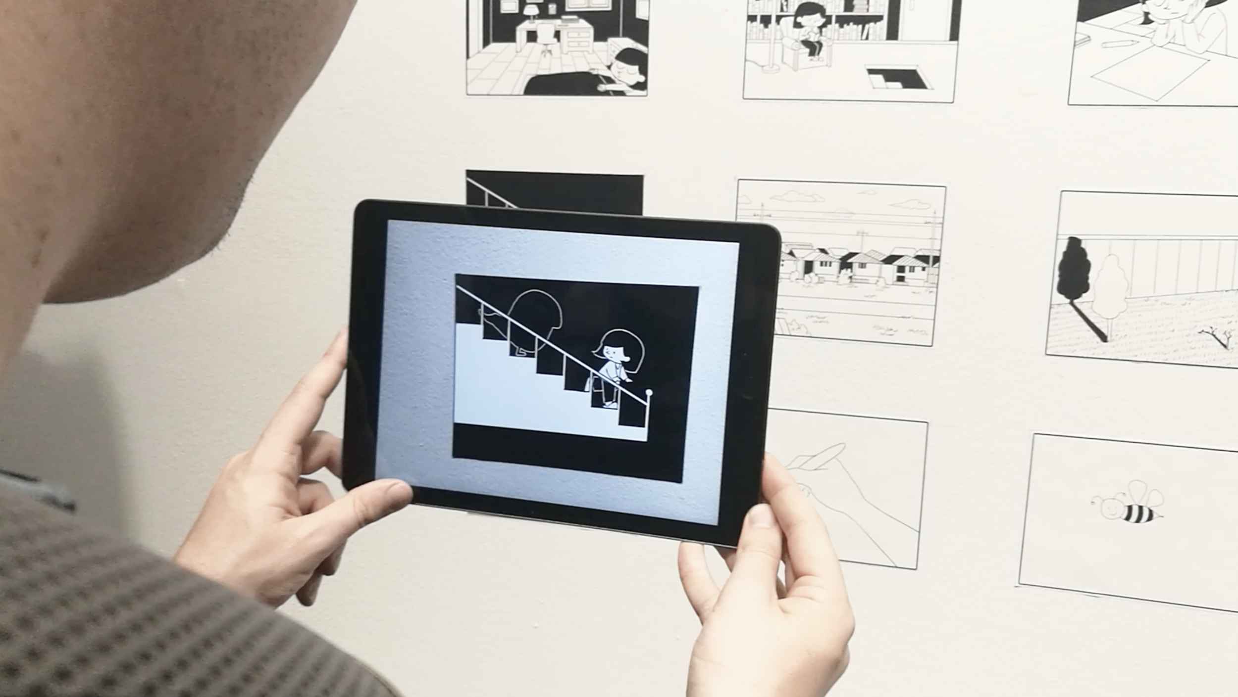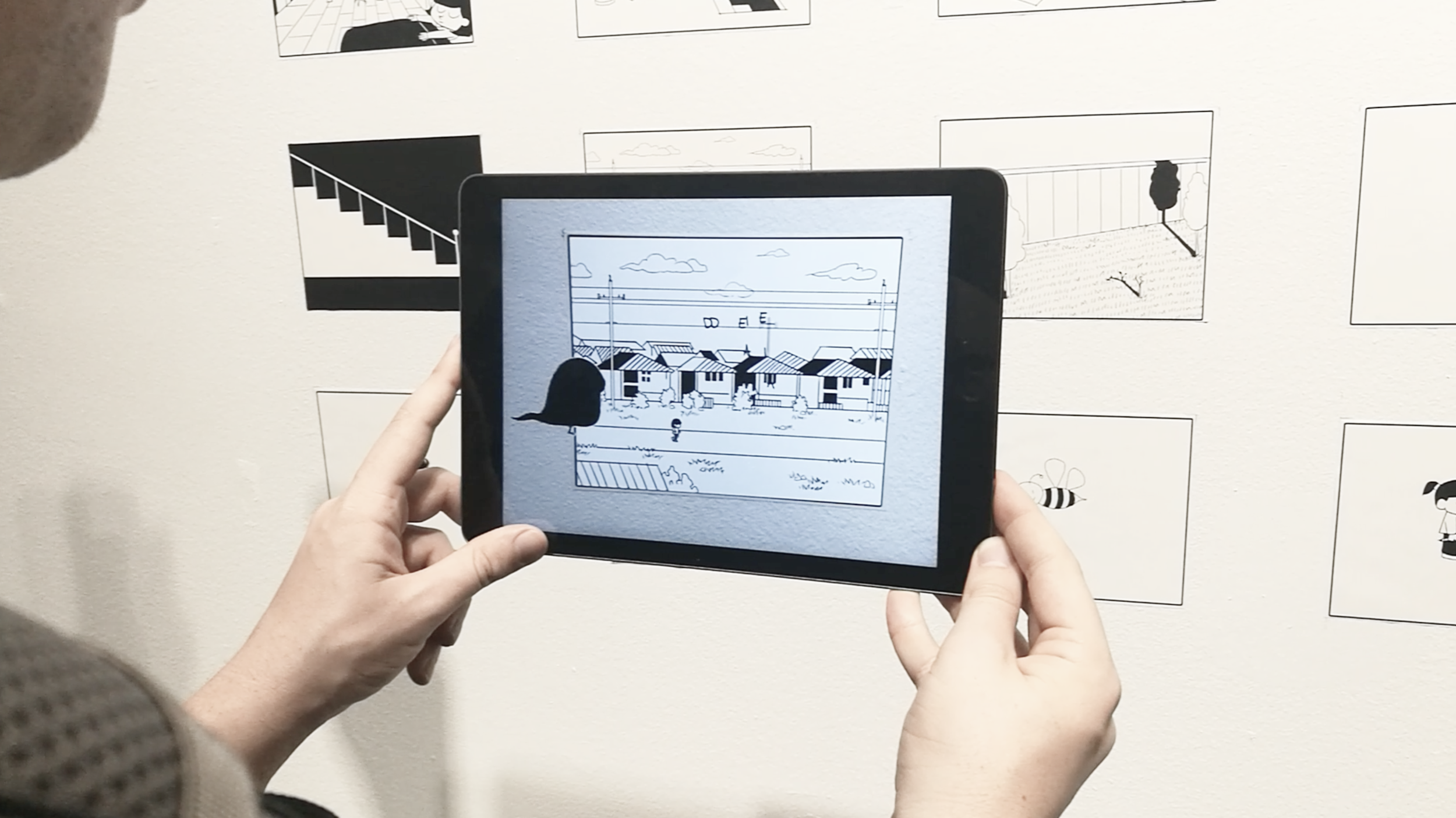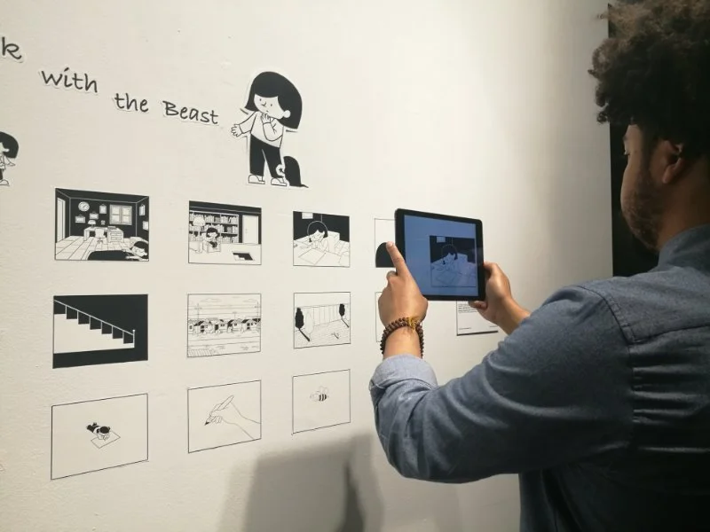 By inviting audiences to move between printed illustration and animated digital overlay, the exhibition highlighted how AR can expand narrative space and create a more immersive emotional experience.